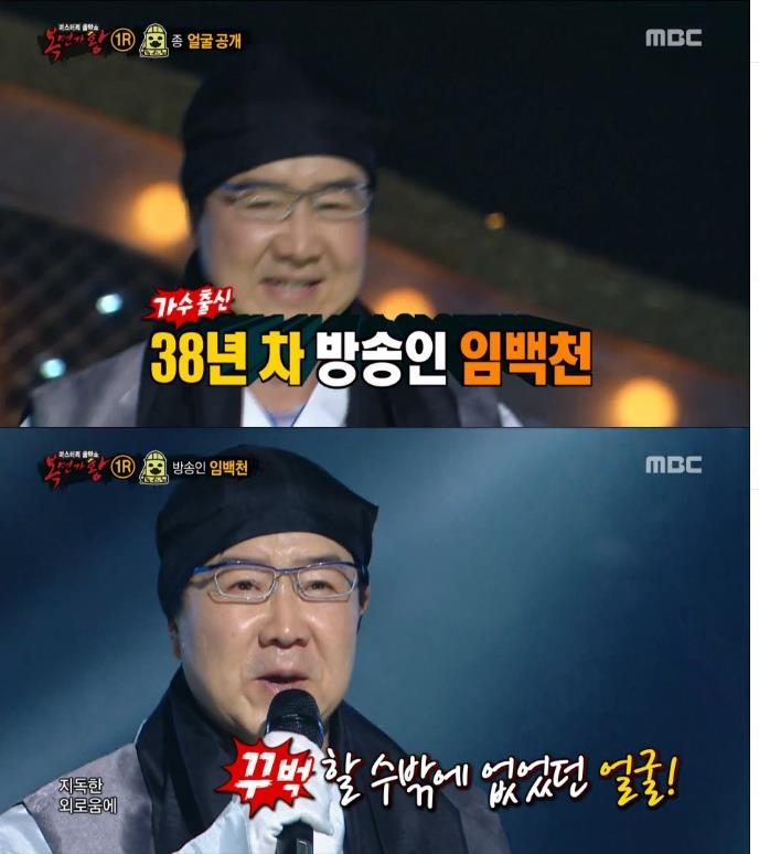 이날 '복면가왕'에는 임백천 외에도 에이핑크 김남주, 조혜련, 이필모 등이 복면가수로 출연했다.