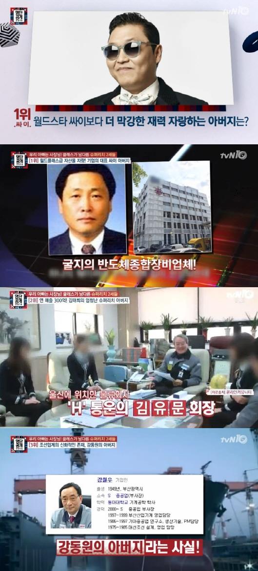 이미지 확대보기4일 밤 방송된 tvN '명단공개 2016' '우리 아빠는 사장님. 클래스가 남다른 슈퍼리치 2세들'에서 연예인 부자 아빠를 둔 1위로 가수 싸이가 꼽혔다.