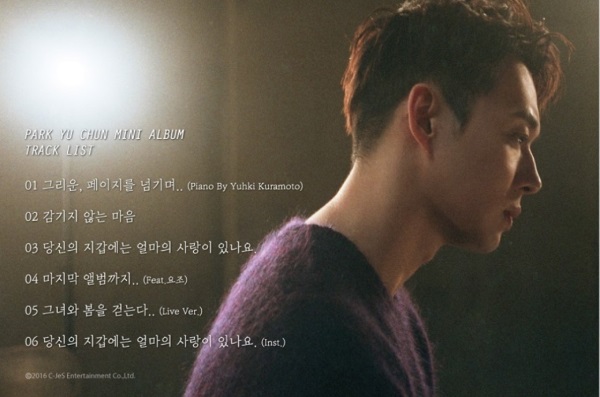 이미지 확대보기8일 소속사 씨제스엔터테인먼트에 따르면 이번 앨범은 "현재 공익근무요원으로 복무 중인 박유천이 입대 전 드라마와 영화로 바쁜 시간을 보내면서도 팬들을 위한 선물을 고민하다 솔로 앨범을 기획했다" 며 “틈틈이 작업해 녹음한 곡을 담은 앨범"이라고 밝혔다.