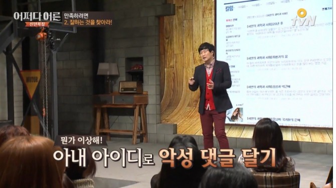 이날 서민 교수는 "2012년 영화 '연가시'가 개봉되면서 사람들의 기생충에 대한 관심이 급증해 포털 사이트에 기생충 관련 글을 게재하기 시작했다"고 말했다. 과학 관련 글은 댓글이 50개 정도가 달리는 수준인데 그의 글에 댓글이 500개씩 달리자 겁이 나기 시작해 아내 아이디로 악성 댓글을 달기 시작했다고 밝혀 방청객들의 폭소를 자아냈다. 그의 악성 댓글을 보고 오히려 누리꾼들이 꺼지라고 거들었다는 것.