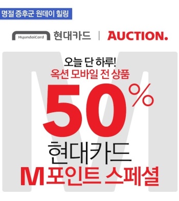 온라인마켓플레이스 옥션은 11일 ‘현대카드 M포인트 스페셜’ 행사를 열고 옥션 모바일을 통해 구매 시 전 상품을 최대 50%(3만원까지)까지 횟수 제한없이 현대카드 M포인트를 사용할 수 있도록 했다.