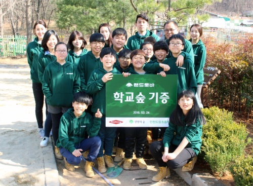 '랜드로바 학교 숲'이 조성된 인천도림초등학교에는 소나무, 산철쭉, 회양목 등 13여종의 나무와 꽃 2000여 그루가 심어졌다.