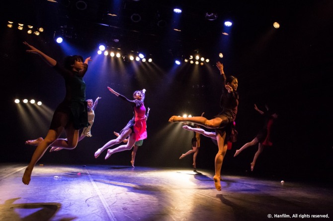 이미지 확대보기그들은 한바탕 신나게 춤을 추었다. 다시 케이크 앞에 선 포니테일의 소녀들의 케이크 놀이, 청춘예찬의 대상이 된 그들의 꿈은 행운과 희망의 풍선처럼 부풀어 있다. 음악이 빠른 비트 음을 타면, 풍선을 든 일곱과 듀엣의 춤이 진설된다. 이윽고 모두가 누운 가운데 독무(방효정)가 노련하게 유영하듯 청춘도전장을 낸다. 도약을 위한 청춘의 춤은 기대 이상이었다.
