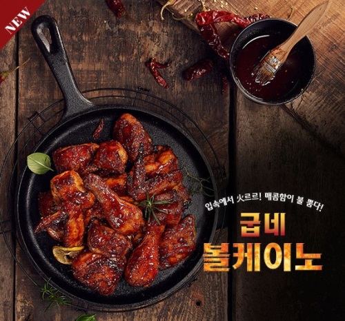 이미지 확대보기7일 업계에 따르면 치킨프랜차이즈 굽네치킨은 고추장 베이스의 특제 소스를 발라 매운맛을 낸 '굽네 볼케이노'를 즉석밥 '햇반'과 함께 판매하고 있다. 굽네치킨의 해당 메뉴는 소셜네트워크서비스(SNS)를 통해 급속히 인기를 모으면서 '굽네 치밥왕 공모전' 시상식도 개최했다. 해당 공모전은 굽네 오리지널, 굽네 후르츄 소이갈릭, 굽네 볼케이노 등의 메뉴를 활용해 먹을 수 있는 '굽네 치밥 레시피'를 제공한 응모자를 선발했다.
