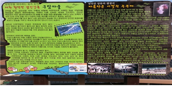 섬진강은 전라북도 장수, 임실, 진안, 광양에서 경남 하동까지 흐르는 긴 강이다. 섬진강이라는 이름의 유래는 고려 우왕 때 왜구가 강 하구에 침입하자 수십만 마리의 두꺼비가 떼지어 몰려와 울부짖어서 이에 놀란 왜구가 피해갔다는 이야기를 담아 두꺼비 섬자를 붙여 섬진강이라고 불렀다고 한다.