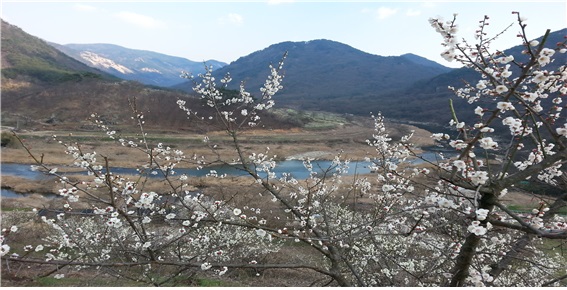매화가 군락을 이루는 길을 따라 걷다보면 무릉도원 같은 구담마을을 만나게 된다. 구담이란 마을 이름은 마을 앞을 흐르는 섬진강에 자라가 많이 서식한다고 하여 구담이라 했다고 하고 또는 강줄기에 아홉 군데의 연못이 있어서 구담이라 불렀다고 한다. 매화 군락 사이로 보이는 산과 강이 한 폭의 수채화를 담아낸 듯한 풍경을 담고 있다.