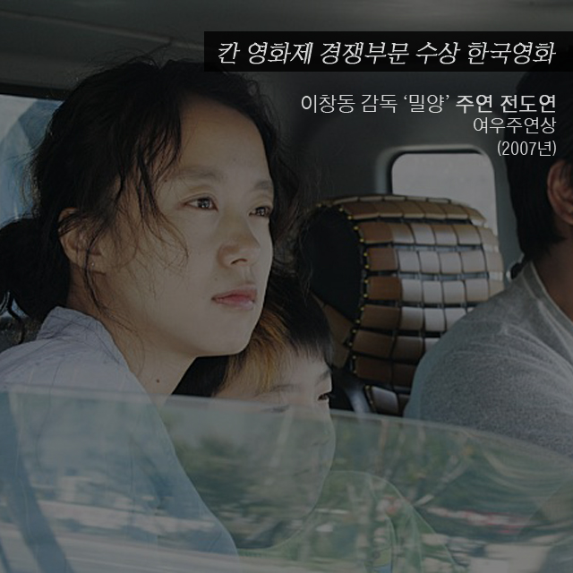 2007년에는 이창동 감독의 ‘밀양’에 출연한 배우 전도연이 여우주연상을 수상했다. 이창동 감독은 2010년 영화 ‘시’로 각본상의 영광을 안았다.