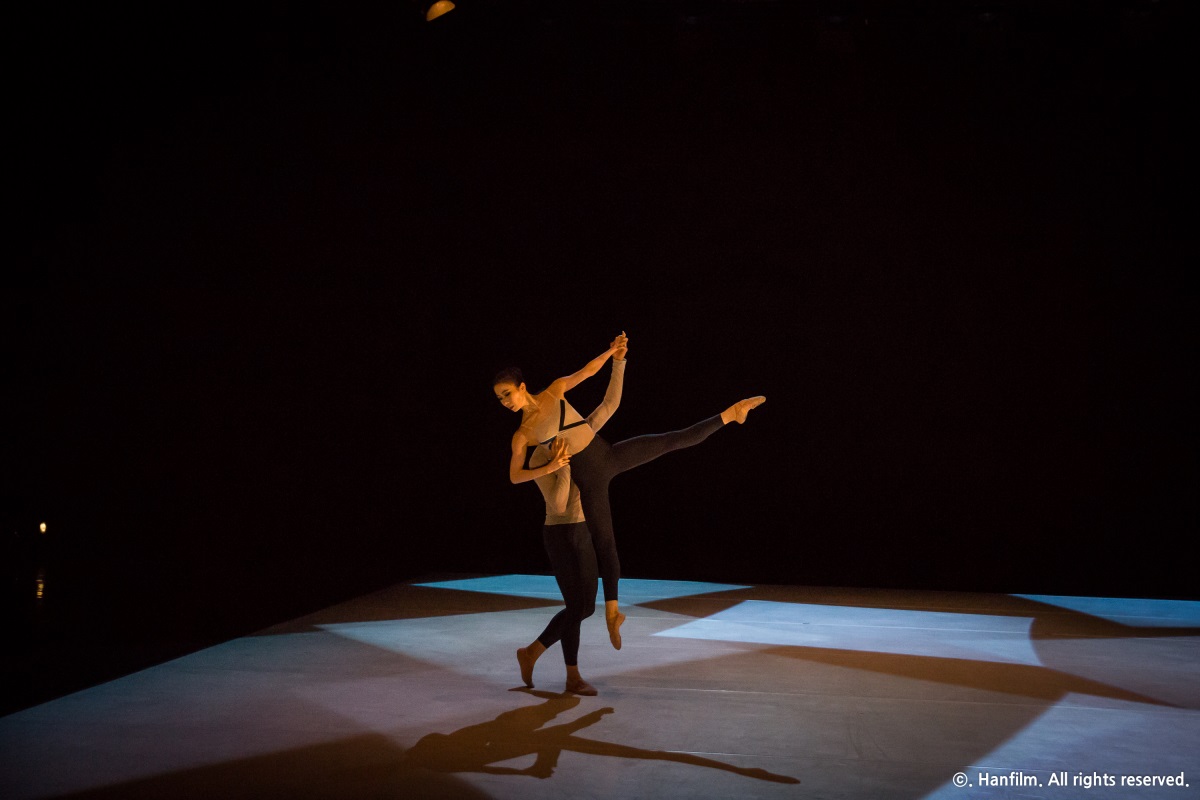 작품의 후반, 음악이 없는 가운데, 발레리노 정형일은 독무로 다양한 동작에 골몰한다. 일찌감치 '5개의 포지션'의 물꼬를 들었다면 현재 클래식발레는 더 많은 포지션의 움직임이 창조되었을 것이다. 이어 주연 발레리나와의 조우, 음악 없이 몸의 기교가 부각된다. 피아노음이 흐르면 좌측으로부터 들어오는 조명이 발레의 가치를 높이는 '발'에 집중한다.