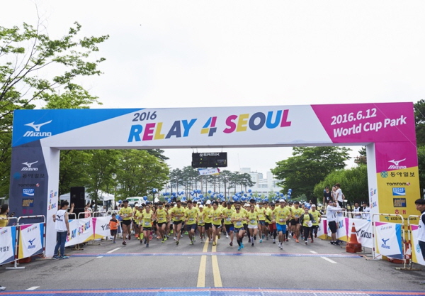미즈노 ‘2016 Relay 4 Seoul’은 ‘함께 달릴 때, 너는 너 이상이다’라는 슬로건으로 계주와 마라톤을 결합한 릴레이 레이스로 이번 대회는 대세 개그맨 콤비인 양세찬과 장도연이 MC를 맡아 개회식부터 입담과 댄스 신고식 등으로 분위기를 띄웠다. 레이스의 시작을 알리는 폭죽과 함께 타이머가 가동되자 4인 팀 참가자들은 12km를 함께 달리며, 멤버 별로 3km씩 구간을 할당해 기록을 측정한 후 네 명의 기록을 모아 팀 기록을 만들었다.