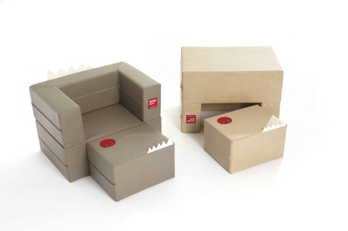 ‘케이크소파’는 디자인스킨이 최초로 개발한 블록 소파로, 책상, 놀이공간 등 다용도로 변형이 가능한 제품이다. 이번에 새롭게 출시된 한정판은 고급스러운 인조가죽으로 제작된 것이 특징이다. 그레이와 베이지 두 색상으로 출시됐다.