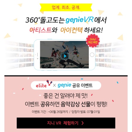 이번 이벤트는 음악 전문 가상현실 서비스 '지니 VR'을 초·중·고등학생들에게 알리고자 마련된 제휴 프로그램이다. 지니 VR은 인기 가수의 라이브 공연이나 뮤직비디오를 360도 화면의 가상현실로 감상할 수 있는 서비스다.