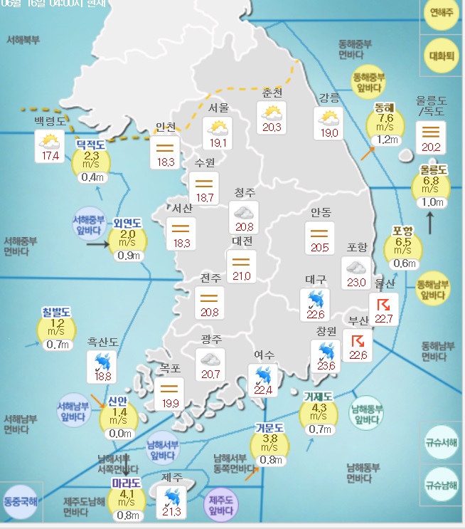 ▲ 울산날씨 : [흐리고 비, 구름많음] (20∼27) <80, 20>