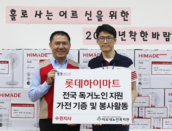 '롯데하이마트 샤롯데 봉사단' 400여명은 더위에 지치기 쉬운 홀몸 어르신들을 위해 6월 30일까지 전국 22개 지역의 독거노인 복지 기관을 방문, 가전제품을 전달하고 봉사활동을 펼친다고 20일 밝혔다.