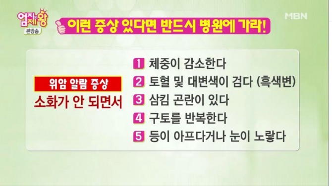이미지 확대보기21일 방송된 MBN '엄지의 제왕'에서는 '위암을 부르는 위염' 편으로 '자각증상이 없어서 더 무서운 위암'이 방송됐다.