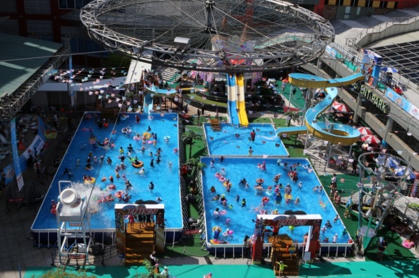 이미지 확대보기썸머 워터파크는 용산 아이파크몰 4층 야외 이벤트파크에 위치해 400여명이 들어갈 수 있는 풀장과 슬라이드, 워터 버켓 등의 물놀이 시설을 갖췄다.