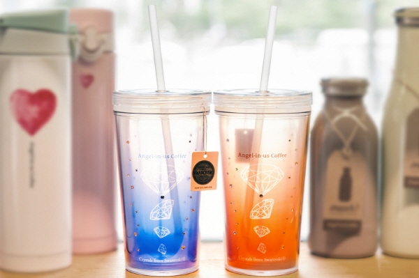 이번에 선보이는 특별한 텀블러는 화려한 스와로브스키 크리스털로 장식해 고급스러움을 더한 아이스 전용 텀블러 제품으로 ‘블루’와 ‘오렌지’ 2종이다. 텀블러 뚜껑과 스트로우가 함께 포함된 구성에 용량은 500㎖, 가격은 각 2만3000원이다.