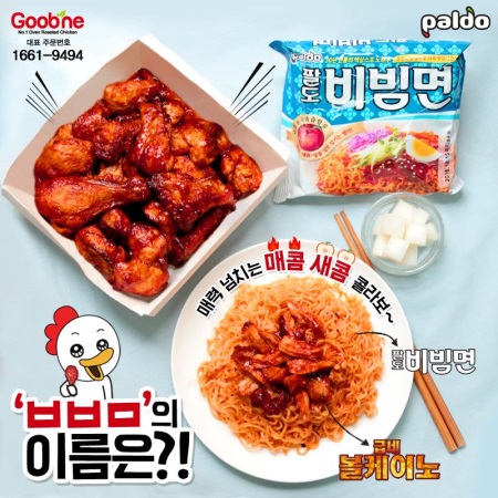 ‘볼빔면’은 굽네 볼케이노의 ‘볼’과 팔도비빔면의 ‘빔면’을 결합한 말로 굽네 볼케이노의 매콤한 불맛 오븐치킨과 매콤새콤한 비빔면을 함께 섞어 먹는 레시피다. 팔도비빔면을 조리한 후에 굽네 볼케이노를 올려 비벼먹으면 된다.