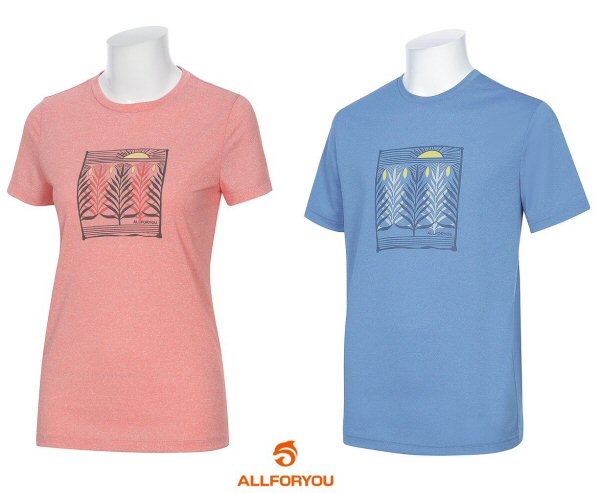 라운드 티셔츠 형태로 선보인 프린트 커플 티셔츠는 쿨론 소재를 사용해 땀 흡수 및 건조가 빠른 흡습속건 기능으로 쾌적한 상태를 유지해주며, 가볍게 착용하기 좋다.