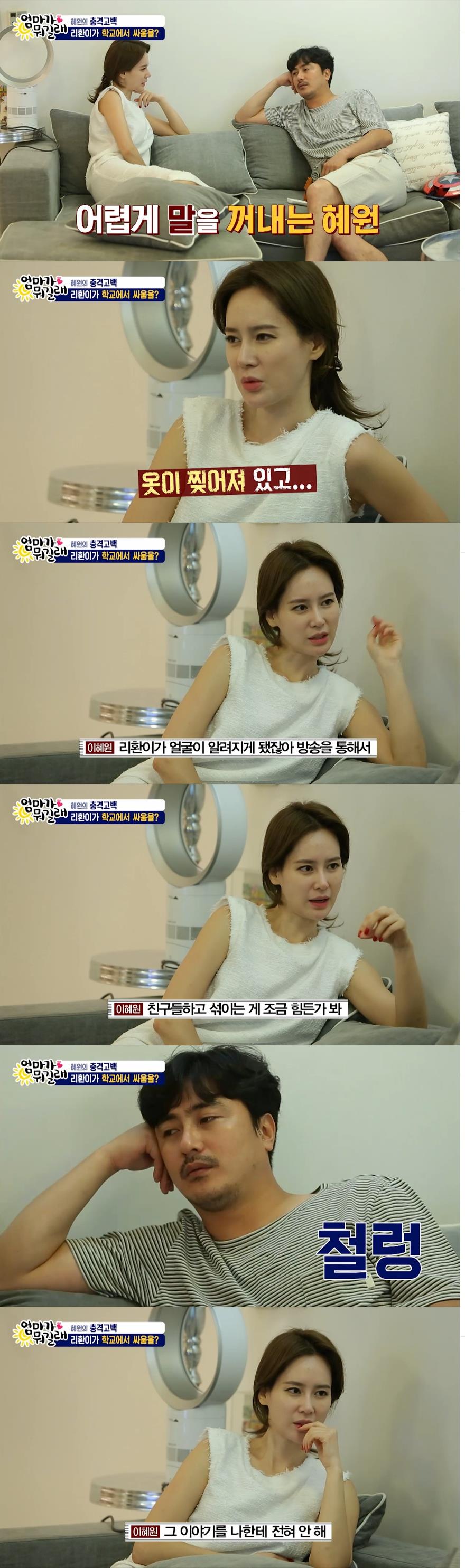 리환이 친구들과 싸운 이유는 방송 출연으로 얼굴이 알려져 친구들과 섞이는 게 좀 힘든 상황이라는 것. 이혜원은 때리고 맞고 그런 문제가 아니라 친구들 관계에서 민감한 이야기에 리환이 화가 난 것 같다고 설명했다. 이혜원은 또 리환이 교복조끼와 가방이 찢어져서 하교 했는데 학교에서 일어난 이야기를 전혀 하지 안 는다고 걱정했다.