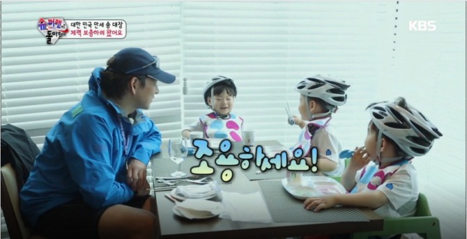 아내 없이 아이들을 돌보는 연예인 아빠들의 육아 도전기를 다루고 있는 KBS 2TV ‘슈퍼맨이 돌아왔다’는 매주 일요일 오후 4시 50분에 방송된다.