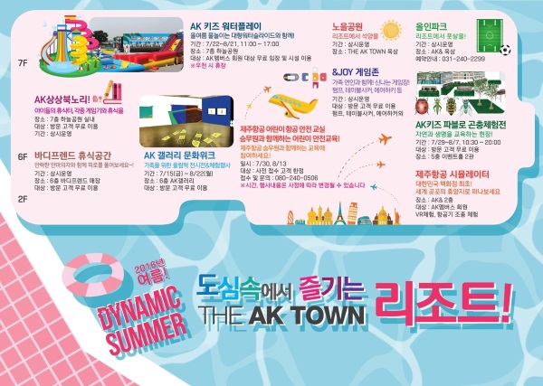 이미지 확대보기최근 들어 '스테이케이션(Stay + Vacation)' '백캉스(백화점+바캉스)' 등의 신조어가 생겨날 정도로 휴가를 멀리 가지않고 가까운 곳에서 보내는 사람들이 늘고 있다. 이에 AK플라자와 AK&은 도심 속에서 더위를 피하려는 휴가객들을 위해 'AK리조트'를 테마로 여러 가지 프로그램을 진행한다.