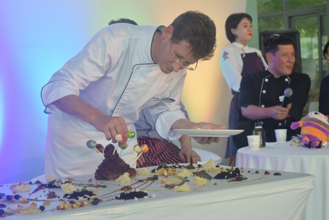 이미지 확대보기곤충을 활용한 셰프들의 창의적인 레시피는 '애벌레 캐비어' '매운 귀뚜라미 김밥' '귀뚜라미 망고 젤리'로 탄생해 관람객들의 박수갈채를 받았다.