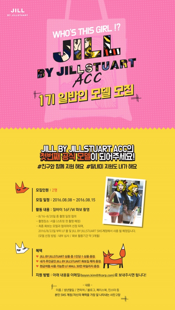 이번 이벤트는 질바이질스튜어트에서 선보이는 트렌디한 감성과 자신만의 개성을 추구하는 주요 타깃층에게 좀 더 친근하고 위트있는 브랜드 감성을 공감할 수 있는 취지로 'WHO`S THIS GIRL!?' 1기 일반인 모델 선발 이벤트를 진행한다.