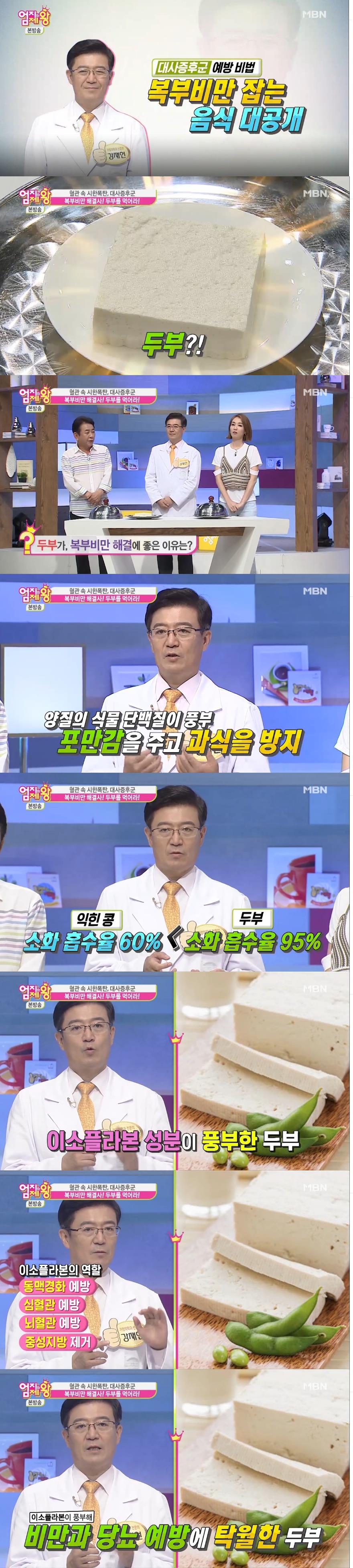 이미지 확대보기9일 밤 방송된 MBN '엄지의 제왕'에서는 '혈관 속 시한폭탄 대사증후군'편으로 맛있게 먹고 복부비만도 제대로 해결하는 음식으로 두부가 소개돼 눈길을 끌었다.