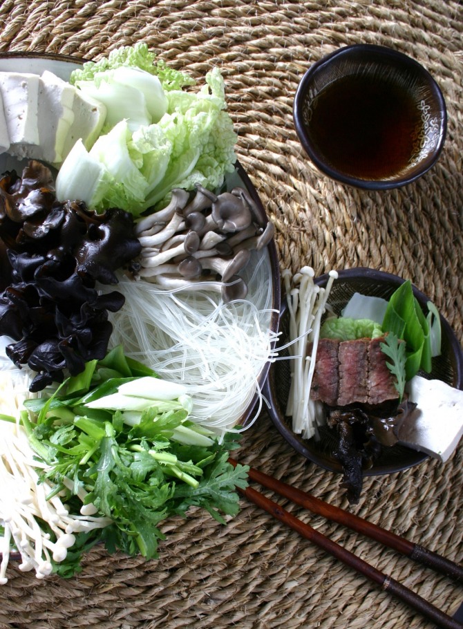 7. 국물이 끓으면 재료를 하나씩 익혀 가면서 양념장에 찍어 먹는다. 마지막에는 무즙을 넣어 국물의 간을 맞춘 후 국수를 삶아 먹어도 된다.