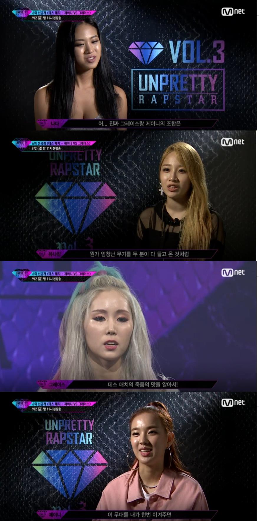 이미지 확대보기1일 Mnet '언프리티랩스타3' 제작진은 제이니와 그레이스의 데스 매치를 앞둔 영상을 선공개해 기대감을 높였다.