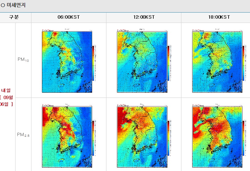 한국환경공단 6일 전북은 오전에, 수도권·강원권·충청권은 오후에 일시적으로 ‘나쁨’ 수준의 농도가 나타날 수 있다고 예보했다.