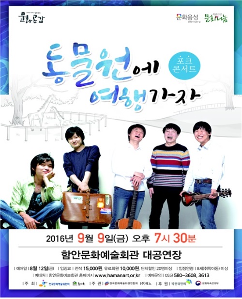 1980~1990년대를 대표하는 가수 '여행스케치'와 '동물원'이 9일 오후 7시30분 함안문화예술회관 대공연장과 10일 오후 3시와 7시30분 양산문화예술회관 대공연장에서 '동물원에 여행가자'를 공연한다.