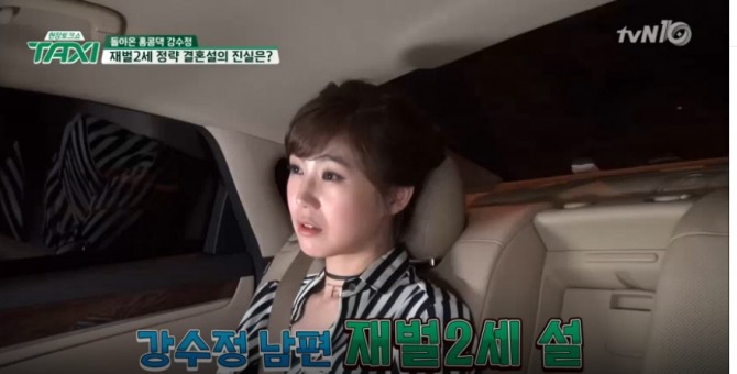 이날 강수정은 먼저 결혼에 대한 재벌 2세와 정략설에 대해 "소개팅으로 만나서 2년여 연애 끝에 결혼했다"고 밝혔다.