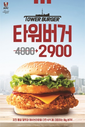 KFC, '타워버거' 2900원 할인 이벤트 진행