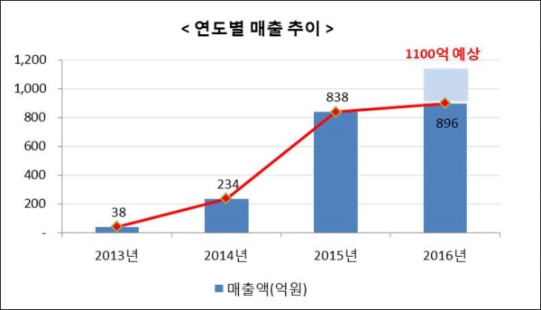 이후 에이지 20’s 에센스 커버팩트는 출시 2년 2개월 만인 2015년 11월 누적매출 1000억원을 돌파한 데 이어 10개월 만에 2000억원을 돌파했다. 또한 연도별 매출추이에서는 2016년 9월 현재 매출 896억원을 올려 이미 지난해 전체매출 838억원을 뛰어 넘었으며 올해 처음으로 연 1000억원 매출을 돌파하고 1100억원까지 달성할 것으로 예상하고 있다.