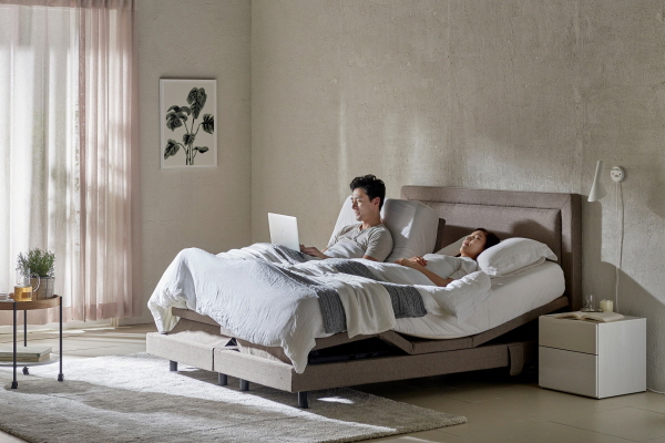한샘측에 따르면 ‘헤더 전동침대’는 매트리스에 전동프레임을 내장해 체형에 맞게 상체/하체/머리 부분의 각도 조절이 가능하다. 특히, 좌/우가 분리돼 있어 생활 패턴이 다른 두 사람이 함께 사용해도 서로 방해 받지 않고 사용할 수 있다. 매트리스의 상단과 하단의 각도를 조절하면 신체의 압점을 분산해 가장 편안한 자세로 숙면 가능하고, 머리 부분의 각도를 미세하게 조절하는 ‘헤드 틸팅’ 기능으로 독서, 스마트폰 사용, TV시청 등의 활동을 돕는다. 리모컨을 사용해 자신의 몸에 맞는 각도를 기억해두면 유용하다.