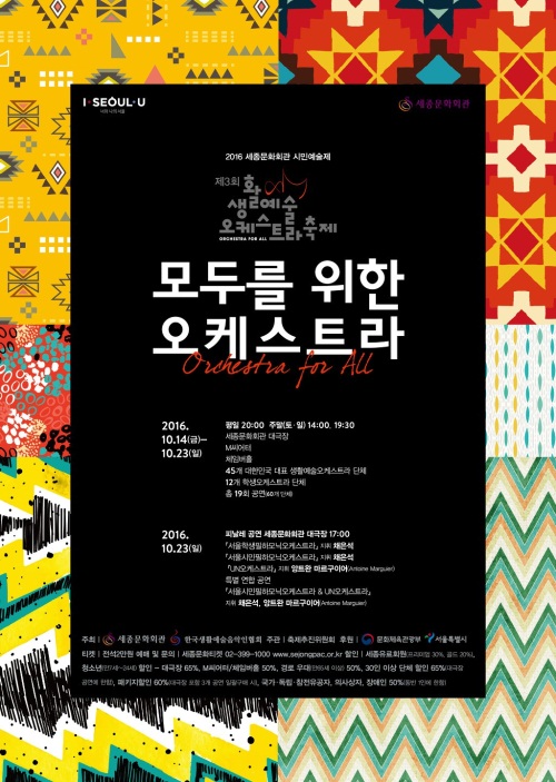 오는 10월 14~23일 세종문화회관에서 열리는 제3회 생활예술오케스트라 축제는 ‘2016 모두를 위한 오케스트라’란 주제로 열리며 피날레 무대에는 서울시민필하모닉오케스트라와 UN오케스트라가 합동공연을 올리며 국제적인 축제로 힘찬 발걸음을 내딛는다.
