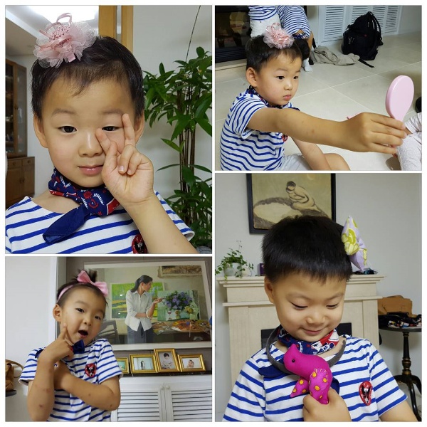 사진 속의 대한이와 민국, 만세는 분홍색 머리핀과 분홍 리본이 달린 머리띠, 노란 핀 등을 꽂은 채 활짝 웃으면서 손으로 V를 그리거나 이쁜 짓을 하고 있어 보는 사람들이 미소 짓게 하고 있다.