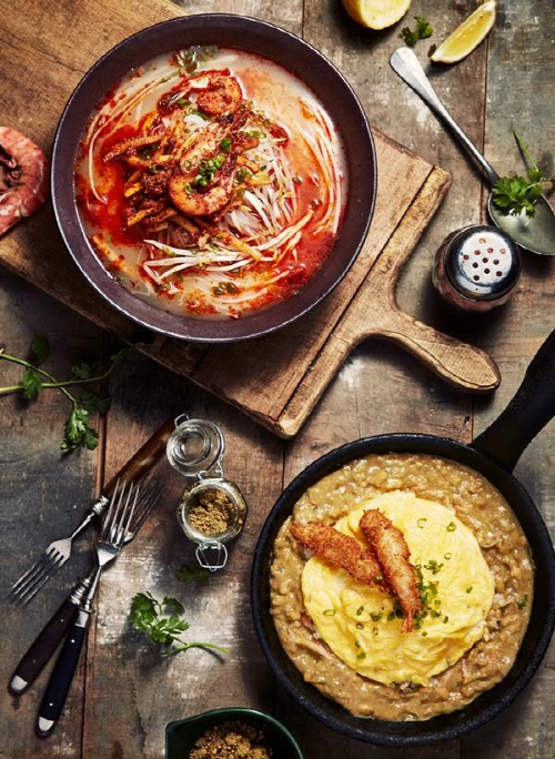 ‘해물 코코넛 커리’는 부드러운 코코넛 밀크를 넣어서 만든 동남아식 커리로, 홍게살과 오징어살을 듬뿍 넣어 해물 특유의 풍미를 더했다. 또한 커리 위에 푹신한 오믈렛과 바삭한 통새우를 얹어 영양 만점 한 끼 식사로도 손색없다.