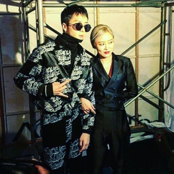 이미지 확대보기나다(좌로부터), 고우리, 라비, 경리가 20일 개최된 2017 S/S 서울 패션위크 '자렛' 콜렉션에 참여해 카리스마 넘치는 포스를 물씬 풍기고 있다./사진= 고우리 인스타그램 캡처