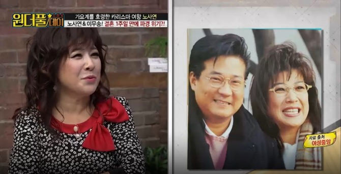 과거 2살 연하의 남편 이무송과 결혼 소식을 알리며 많은 관심을 받았던 노사연은 사실 결혼 일주일 만에 파경 위기를 맞은 사연의 비하인드 스토리를 공개하며 두 사람의 전쟁 같았던 결혼생활을 언급했다.