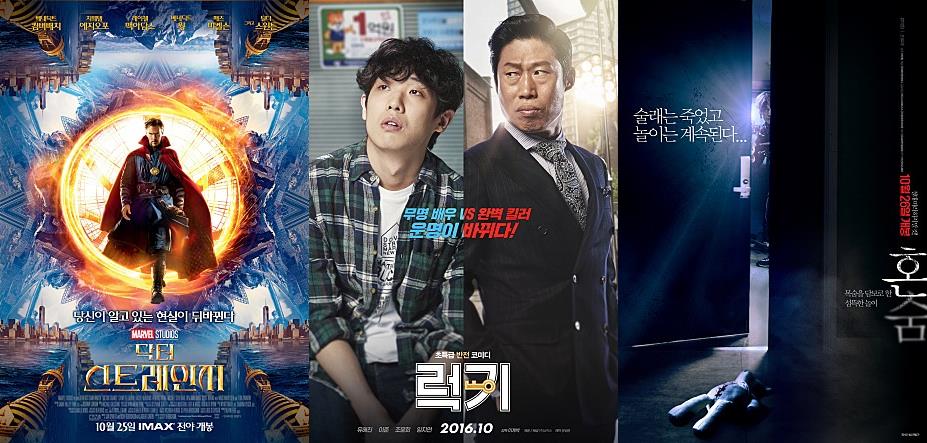 이미지 확대보기영화 예매율 순위 1위에 오른 ‘닥터 스트레인지’는 81.6%라는 높은 예매율을 기록하고 있으며 뒤를 이은 2위 자리에는 예매율 11.2%로 10월 13일 개봉한 영화 ‘럭키’가 올랐다.