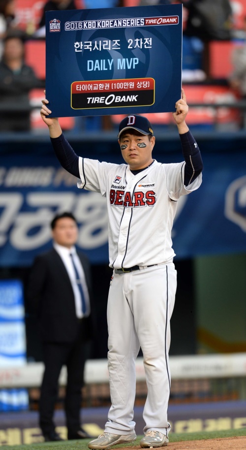 데일리 MVP는 장원준의 호투를 이끌어낸 포수 양의지가 차지했다. 양의지는 4타수 3안타 2타점을 기록했다.