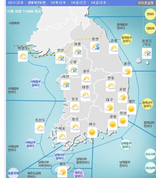 ▲ 제주 : [구름조금, 맑음] (11∼17) <10, 0>