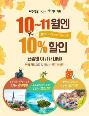 여행바보 KRT는 이러한 가을 여행 수요를 겨냥해 하나카드와 함께 여행지 추천 및 할인 혜택 기획전을 실시한다고 밝혔다.