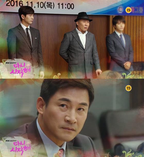 이미지 확대보기10일 밤 7시 15분 방송되는 MBC 일일드라마 '다시 시작해'(연출 박재범·장준호, 극본 원영옥) 115회에서는 강병철(윤주상) 회장이 기적적으로 일어나 주총서 이태성(전노민)의 독주를 막는 장면이 그려진다.