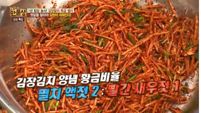 13일 밤 방송된 tv조선 '살림9단의 만물상' 166회에서는 '김장의 핵심! 젓갈부터 완전정복하라' 편으로 김장철을 맞아 각종 젓갈을 고르는 특급 비법과 누구나 쉽게 김장 김치를 맛있게 만드는 비법이 소개됐다.