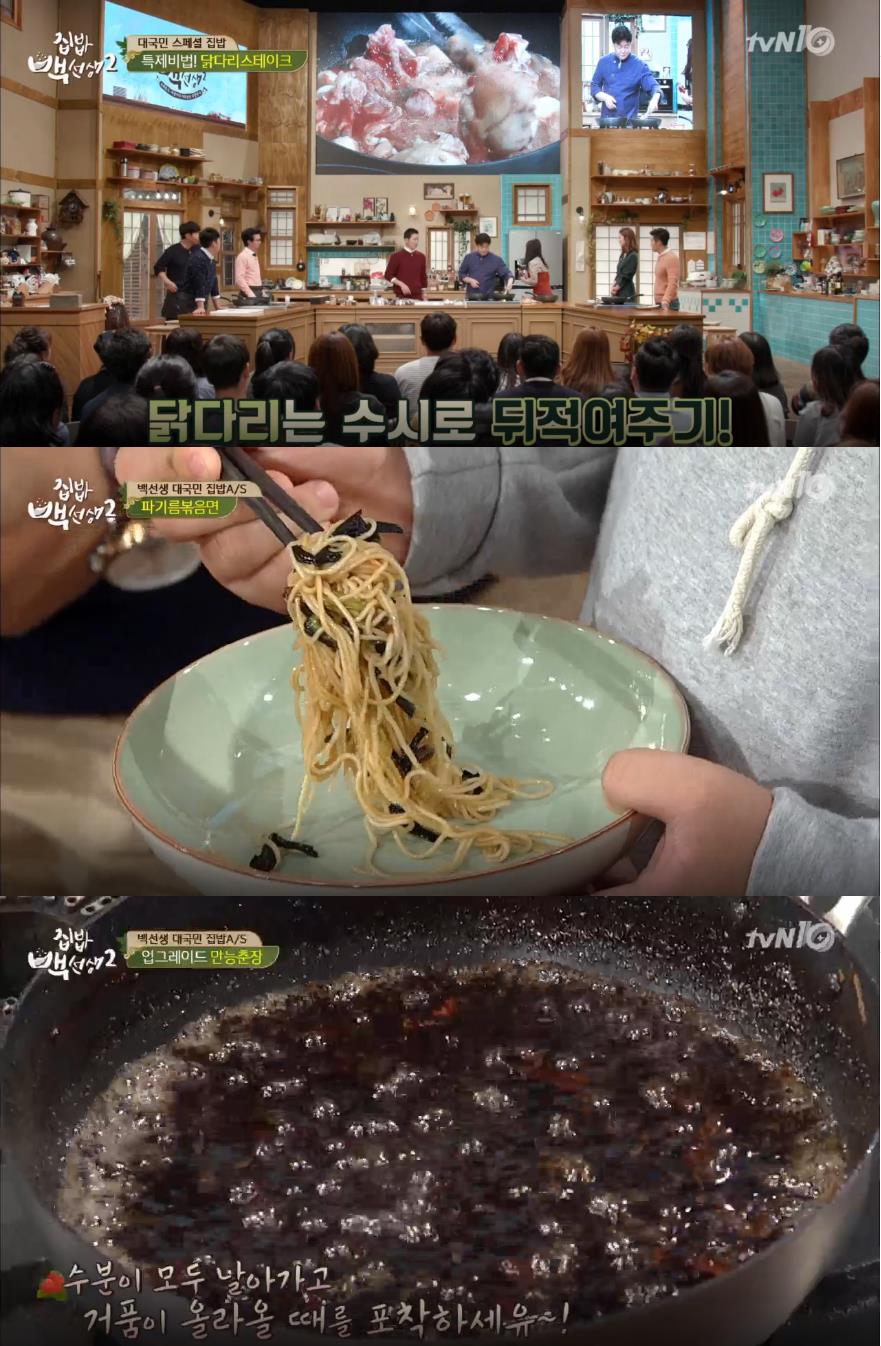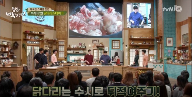 이미지 확대보기백종원은 수많은 요리 불통들을 집밥의 세계로 인도한 지 어언 2년! 그래도 안 돼서 궁금한 사람, 실제로 배워보고 싶은 사람을 초대해 ‘파기름’ ‘만능춘장’ 활용요리 및 ‘닭다리 스테이크’ 황금 레시피를 공개했다.