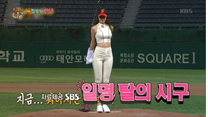 이날 유지는 야구장에서 초밀착 의상을 입고 나온 것만으로도 시선을 끌었는데 상의를 벗은 일명 '탈의 시구' 장면으로 화제를 모았다. 유재석은 "갑자기 탈의를 해서 어휴 깜짝 놀랐다"고 솔직 발언을 했다.