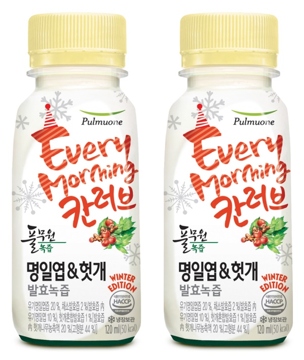 한편 풀무원녹즙은 '발효녹즙 3종'(명일엽&헛개 발효녹즙, 마늘&부추 발효녹즙, 아스파라거스&케일 발효녹즙)에 대해 겨울철 한정판 패키지인 윈터 에디션을 선보인다.